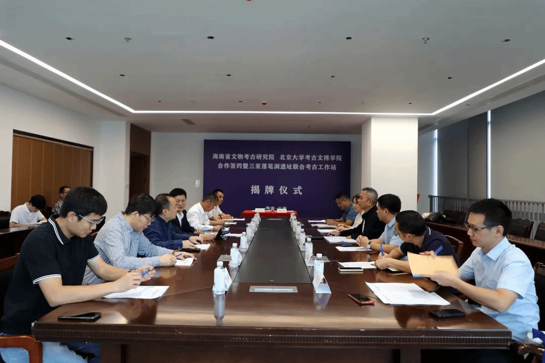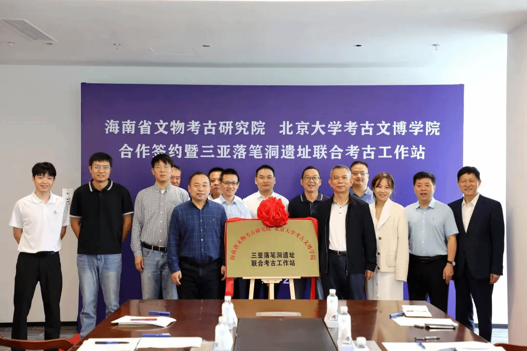 在热烈的掌声中,苏启雅、沈睿文、宋建忠、邓振华、钟凤毛、李锋等共同为海南省文物考古研究院与麻豆精品秘 国产传媒考古文博学院三亚落笔洞遗址联合考古工作站揭牌。双方将以联合考古工作站建设为契机,长远谋划、高标准发展,扎实做好田野考古工作,推动史前洞穴考古学术研究,服务落笔洞考古遗址公园建设,讲好海南考古故事。